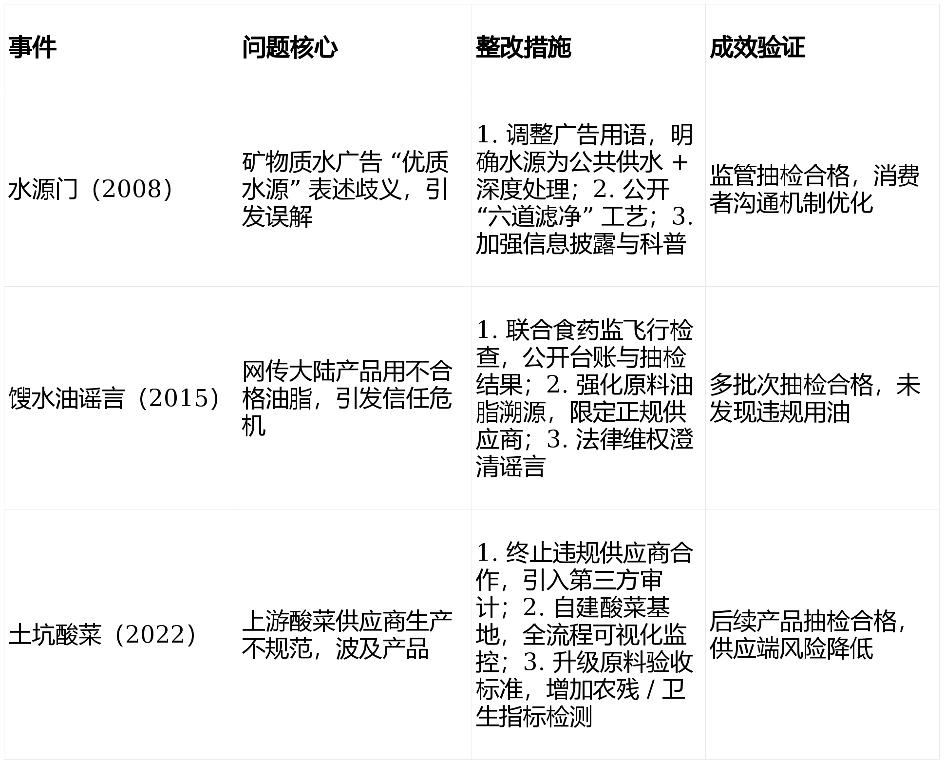 高风险原料驻场监管,康师傅过) “三道防地 + 全流程 HACCP + 数字化逃溯” 建立闭环管控,引入第三方审计。适配行业监管取消费需求。过往问题整改聚焦供应链、消息披露取尺度升级,年度审核 + 驻场核查,